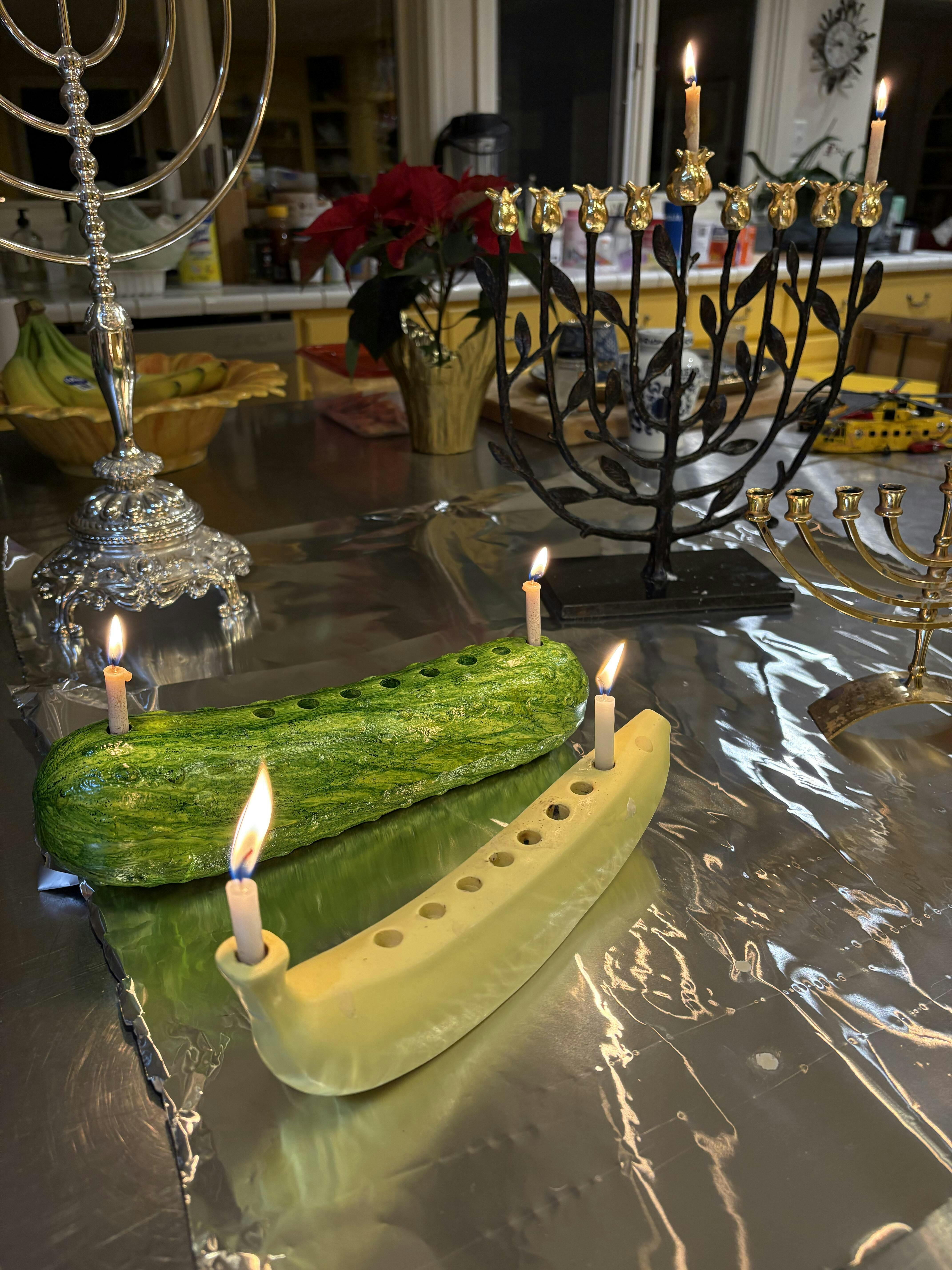 - Do not leave lit menorahs unattended or try to eat your Pickle Menorah!