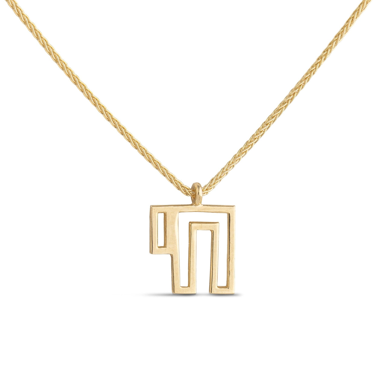 Chai Outline Necklace by Israel Museum - 14k Gold