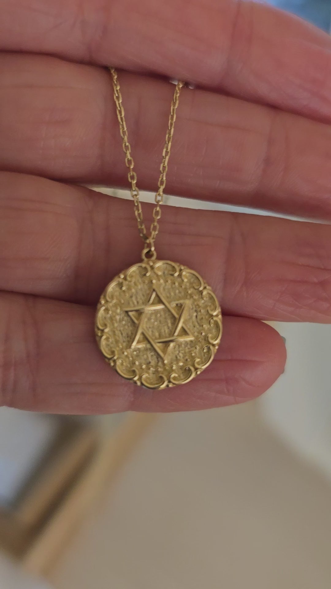 Engraved Star of David Necklace - 14k Gold