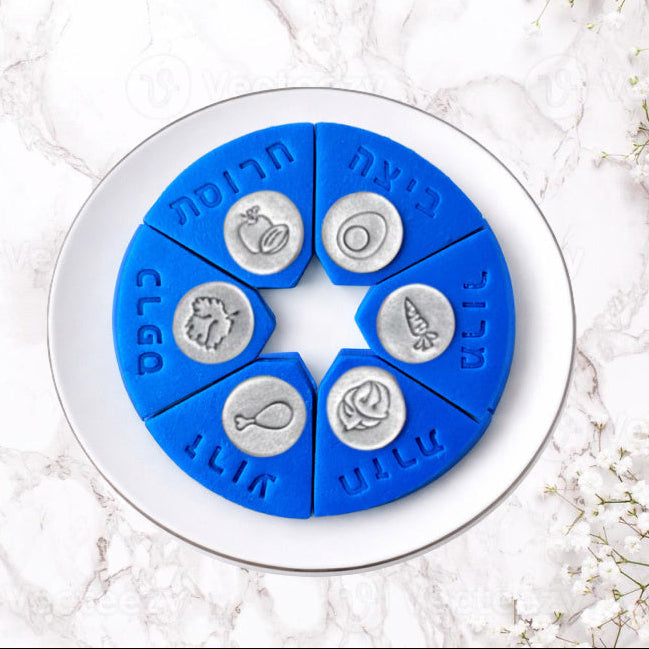Marzipan Blue Modular Seder Plate - Gold or Silver Centers